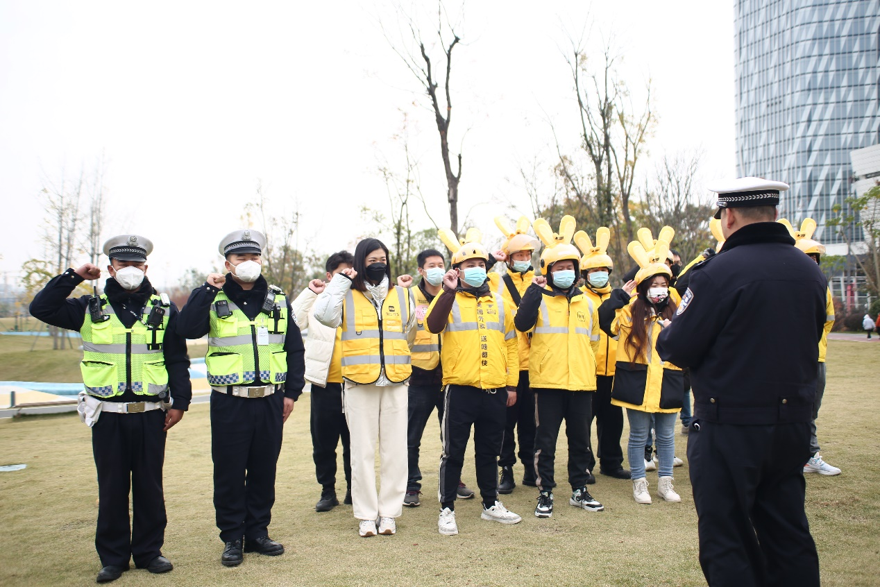 活动中,美团配送区域安全负责人在活动现场发起了交通安全倡议,倡议骑手们遵循和秉持“文明守法、安全回家”安全理念和意识,主动成为文明交通的宣传者、践行者和守护者。“作为骑手,我宣誓:遵守交通法规,听从交警指挥,佩戴头盔,文明骑行……”10余名外卖配送骑手及共享单车运维员代表在交警的带领下,就遵守交通安全法规,树立交通安全意识在高新区交子公园进行了庄严的宣誓。