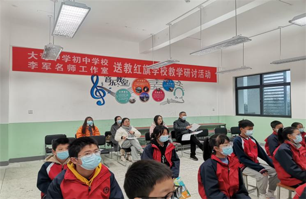 四川新闻网成都12月7日讯 有一种力量叫结伴而行,有一种引领叫携手共进。为增进城乡音乐教师间的学习和交流,进一步提升音乐教师的教育教学水平,充分发挥名师团队的引领示范作用,促进城乡教育的均衡发展,12月6日,成都市大弯中学初中学校李军名师工作室一行到红旗学校开展了送教下乡的教学研讨活动,工作室全体成员参加了此次活动。本次活动分为教学展示、评课议课、教学研讨三个环节。