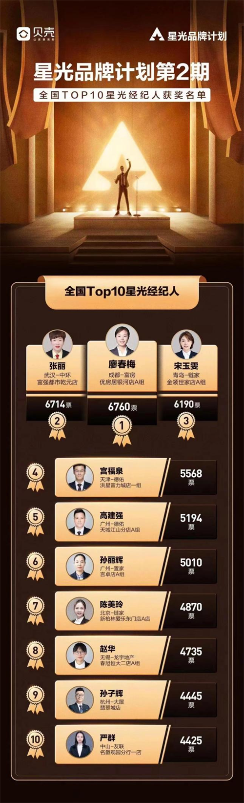 这一次,她更是成为全国40万经纪人中最耀眼那个,在2022第二期贝壳全国Top10星光经纪人票选中,勇夺第一。