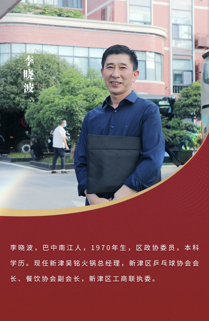 从事餐饮行业近20年,每天与美食打交道,李晓波仍保持着良好的身材,两鬓的斑白透露出他在商海打拼留下的痕迹。区政协委员、区乒乓球协会会长、区餐饮协会副会长、区工商联执委,众多职务集于一身的李晓波声调沉稳,波澜不惊,讲述着一个来自外乡的企业家与新津的不解情缘。