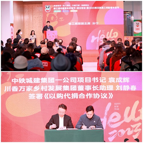 在年货节启动和开幕式现场,省工商联党组成员、副主席孙宁,成都市工商联党组成员、副主席刘洪江在讲话中感谢了相关爱心企业和广大青年的大力支持,倡议了社会各界更多爱心企业和青年以实际行动参与乡村振兴工作。成都文化旅游产业商会会长、成都星娱文化传媒股份有限公司董事长王开昕和中铁城建集团一公司党委副书记、总经理张蒙代表商协会和爱心企业表示将以更大的热情参与到乡村振兴工作当中。中铁城建集团一公司项目书记袁成辉、甘孜州圣洁甘孜电子商务科技发展有限公司总经理达瓦德央,神州天立教育集团资源中心总监杨丁娟、川香万家乡村发展集团董事长助理刘静春等100家爱心企业现场签署了《以购代捐采购协议》。种养殖户参会代表王萍现场高兴地说道:“今年我们的农产品销售有希望了!”
