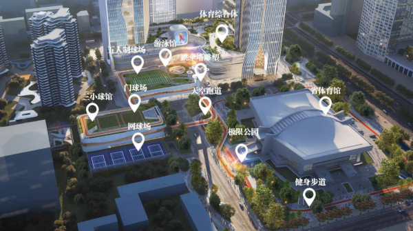 项目未来将引入国际先进的体育运营、体育金融、体育广告、赛事总部、赛事运营等相关企业,构筑体育产业新高地。集合室内风洞、室内飞行体验、室内冲浪、室内滑雪、室内潜水、室内蹦极等城市“轻运动”项目,打造成都体育运动新极核。通过数字赋能,引入数字体育娱乐、VR体育直播、虚拟竞技体验、数字体育收藏展示、电子竞技直播运营、体感游戏、电竞+衍生品等创新业态,培育成都体育消费新业态。