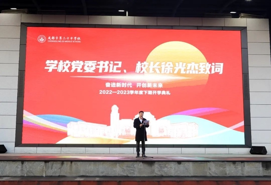 寄语殷切,踏实有为。“欢迎大家回归大同校园!”学校党委书记、校长徐光杰在开学典礼致辞中,向全体师生致以亲切的问候。徐光杰以一系列数据总结了2022年度二十中、大同教师、大同学子取得的辉煌成果,向每一位拼搏奋斗的大同人致敬。新学期即将扬帆起航,站在兔年关口,徐校长提出三点期望:
