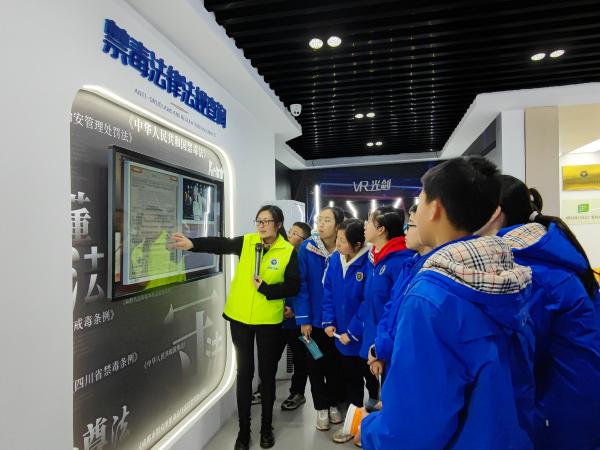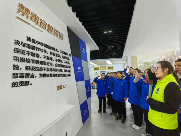 2月17日下午,在新学期开学之际,桂溪街道邀请26名大源学校优秀学生代表20余人到访基地,学习“开学禁毒第一课”。