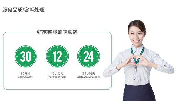 同时,为了推动赔付流程的高效透明,让赔垫付款项能够快速执行到位,从去年起,链家建立专属客服集中化系统,全国链家的赔付都通过此系统来执行;这项业务体系就是围绕着刚刚提到的“30124客诉承诺”,主要是指对消费者投诉的快速响应机制:三十分钟快速响应、十二小时给到初级解决方案、二十四小时力求帮客户解决问题。目前,最快的一笔赔付仅用时两分四十七秒。