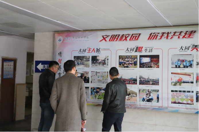 四川新闻网成都3月6日讯 3月2日,成都市“四川省绿色学校”抽查验收小组领导一行到我校初中部开展创建”四川省绿色学校“评估验收工作,金牛区教育局副局长刘强,金牛区教育局德体卫艺科科长李从伟,成都市二十中学校副校长张劲松、刘利军、杨关键、李睿,德育处副主任田敏侠,教务处副主任王彤,教科室副主任杨松林陪同验收。