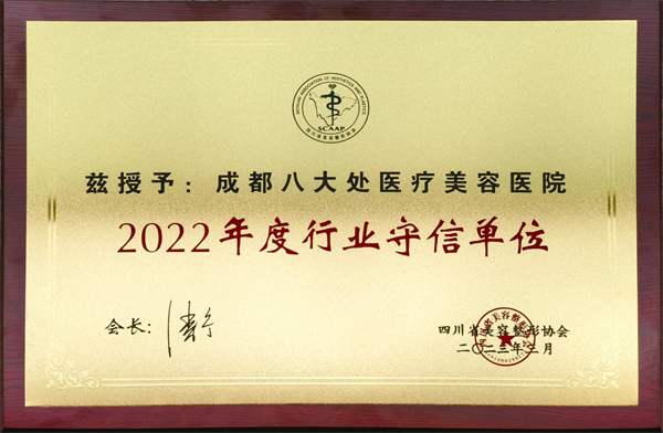 (成都八大处获评四川省美容整形协会“2022年度行业守信单位”)