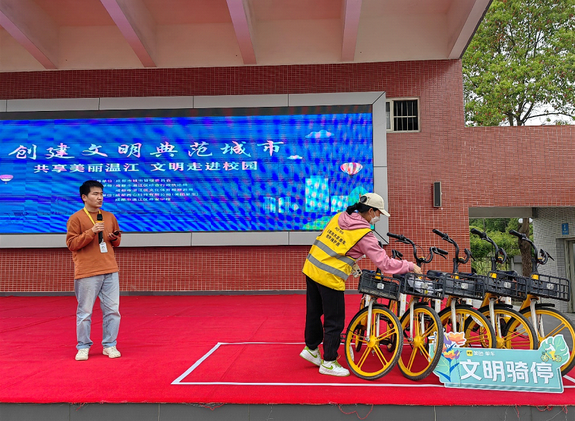 温江区综合行政执法局副局长戈恒表示,通过此次共享单车文明骑行、规范停放宣传进校园的活动,不仅向同学们宣传了共享单车安全、文明使用规范,更是在城市共建、共治、共享的新局面下,通过政、校、企的三方聚力,进行的一次有益探索。