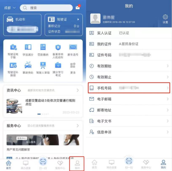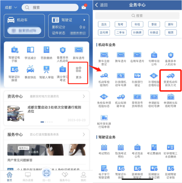 四川新闻网成都4月12日讯 成都交警提醒,广大市民在更换手机号码后请及时对“交管12123”APP和“蓉e行”的联系方式进行更新,以便实时跟进驾驶证、机动车相关业务!那么,应该如何变更“交管12123”App和“蓉e行”的手机号码以及机动车/驾驶证档案信息中的联系方式呢?
