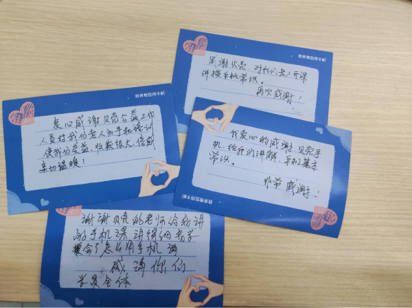 “我爸爸妈妈也上了年纪,每次为老人们多做一点,我就想到我爸爸妈妈也需要身边邻居这样的善意。”被需要的幸福感,“老吾老以及人之老”的善意,让陈雪芹义无反顾投身手机课堂的公益,并带动玲珑南域店的所有小伙伴一起为周围小区的老年人更美好的居住做贡献。