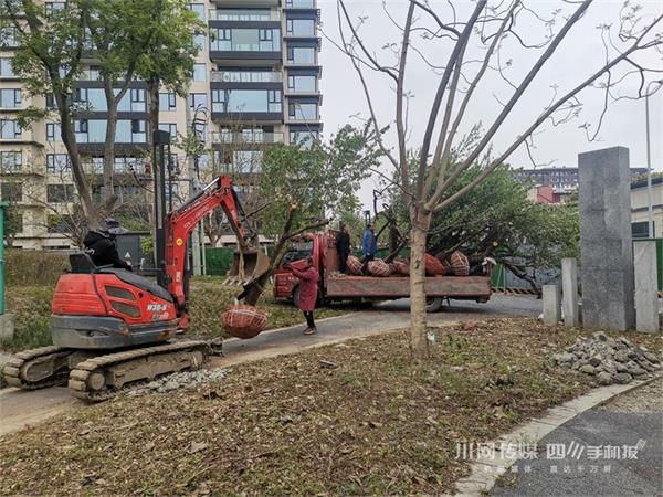 今年3月底,位于武侯区智星一路的“智慧宜居公园”因荒废5年至今未启用被媒体曝光后,引发关注。4月13日,记者在现场看到,公园的打围铁皮已被重新加固,此前公园西北角虚掩的门洞也换成了铁门。三辆满载桃树的卡车停在公园门口。“这些是要补种到公园里的,明年这个时候就能赏桃花了。”一名工人说。
