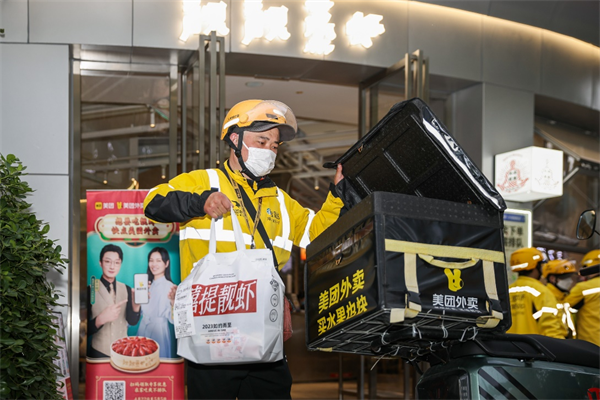 考虑到小龙虾外卖的品类特点,美团外卖针对小龙虾商户提供了“出餐后调度骑手”的配送方案,在商家出餐后进行调度骑手,这样保障商家的备餐时间,也免去了骑手提早到店的等待时间。