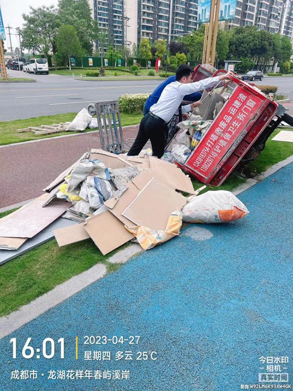 四川新闻网成都5月10日讯 骄阳似火的4月底,中信大道旁,一辆载满建渣的三轮车正行驶着。突然,车轮碾过一块石头,整个车身都朝着路边侧翻过去。幸运的是车子正好翻倒在路边的绿化带上,车上负责运建渣的老陈夫妻并没有受伤。