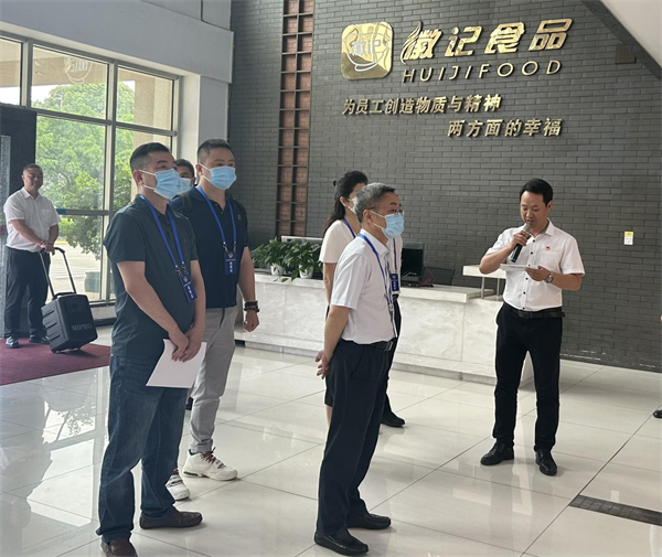 视察组来到四川徽记食品股份有限公司,现场参观了企业的荣誉室、产品实验室、透明车间,企业相关负责人向来宾介绍了企业发展历程和生产情况。