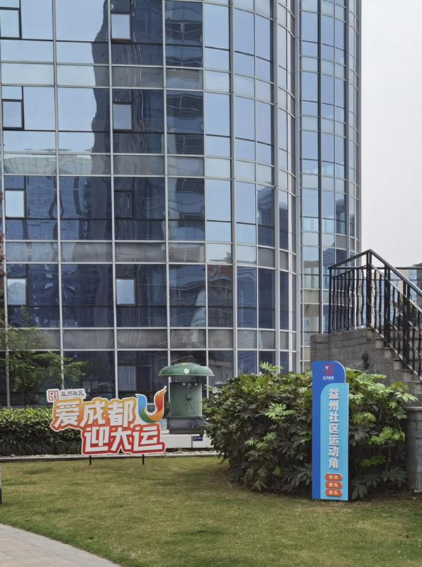 优化辖区运动场景。通过增添爱成都、迎大运等主题宣传小品美化小区公共绿化带、公共篮球场等运动场景,“见缝插针”安置乒乓球台于写字楼中,创造办公楼内的轻运动场景,以群众实际需求出发,不断创造更好的体育健身环境氛围。