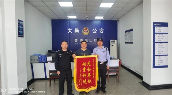 四川新闻网成都5月25日讯 近日,大邑晋原派出所值班室接处警大厅接待了群众钟先生,他手里拿着一个长方形盒子在派出所“守”了近两个小时,只为等到那位“有点微胖的刘警官”。“刘警官,我终于把你守到了,这面锦旗我必须要亲自送给你。”钟先生随即便打开手中的盒子拿出了一面锦旗。