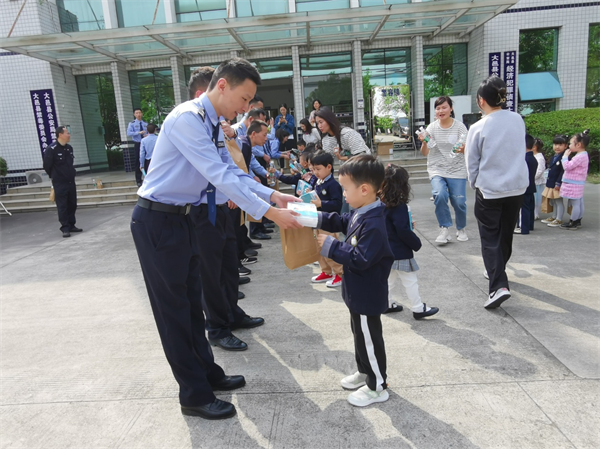 慰问期间,孩子们兴高采烈的向民辅警们问好,还将精心准备的礼物送到每一位警察手上,整个场面其乐融融,欢声笑语不断。小朋友们温暖稚嫩的话语让警察们倍感开心,大家表示这是他们收到的最好的慰问礼物,十分感动。