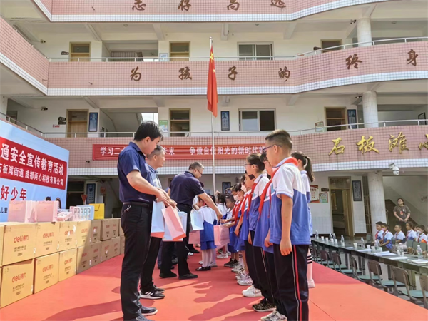 活动上,成都市新都区交通运输局、石板滩街道办事处、石板滩街道解放村两委、成都市新都区石板滩小学(四分校)、美团单车相关负责人等参与方,为学校近千名学生发放了爱心文具和相关物资。