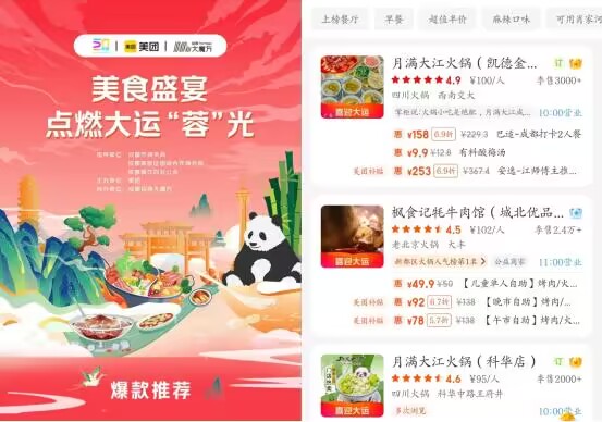 为持续借势大运会,延续消费热情,6月25日,成都市 “美食盛宴 点燃大运‘蓉’光”促消费活动正式启动。活动期间,美团将投入千万级资源,并联合超1200家品质餐饮商家推出美食套餐限时秒杀活动,在商家让利的基础上叠加平台补贴“折上折”,让本地市民和来蓉游客得到更多实惠。