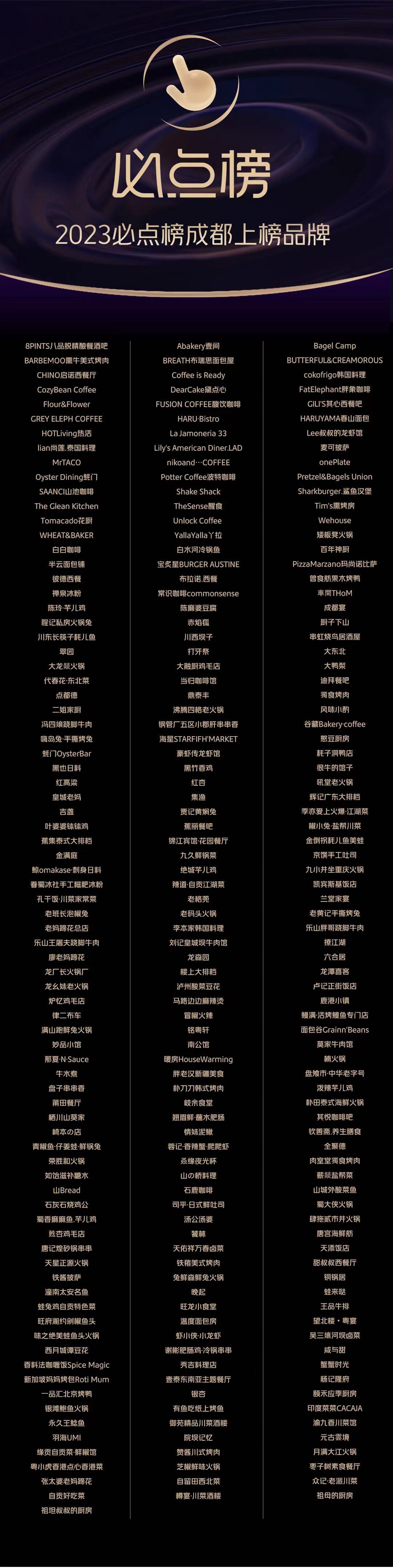 在去年首次发布北京、上海“必点榜”之后,2023年首批“必点榜”再开城广州、深圳和成都三城,进一步扩大覆盖面。在上榜品牌数上,上海以366个品牌数位列全国第一,北京上榜品牌数365个,深圳277个,广州266个,成都241个。在2023年的北京、上海"必点榜"上,有超过40%的品牌成功连续上榜,展现了必点榜商家在品质、口碑和用户满意度的稳定表现,为消费者提供有价值的参考。