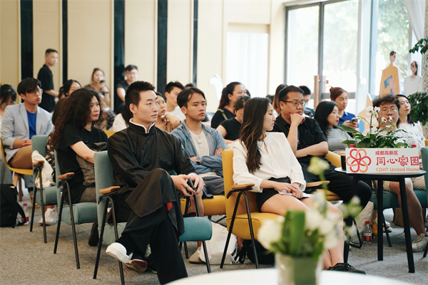 游览结束后,一行人乘车前往GHOME青年之家,开启“新青年说”的篇章。一段精彩的太极开场表演,让到场青年感受到了流光溢彩的传统文化及人杰地灵的成都魅力。随后,桂溪街道党群办负责人作为主办方上台为活动致辞,“青年因城市而聚,城市因青年而兴”。致辞中,主办方表达了在高新区的创新与活力之下,桂溪街道作为高新产业的核心区,始终向各界别优秀的青年人士展开开放包容的胸怀。