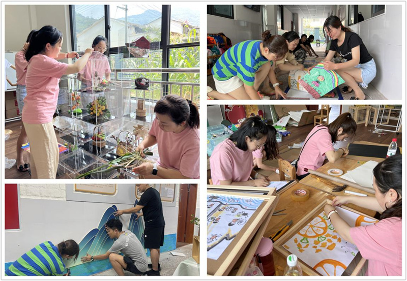 今年,帮扶小组的成员们因地制宜,下足“绣花”功夫,为书楼镇中心幼儿园进行环境创设,打造“山水自然、耕读传承”园本文化;由东府幼儿园、玉泉幼儿园和西马棚幼儿园组成的培训组根据书楼镇幼儿园的需求,重点围绕环境浸润进行培训,将公共区域环境打造成为本土特色鲜明的幼儿游戏乐园: