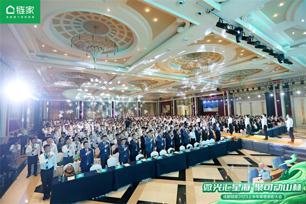 四川新闻网成都7月21日讯 2023年7月19日,成都链家召开半年度荣誉表彰大会,贝壳成都站顾问党杰、贝壳西南区域总经理都谋富、成都链家城市总经理张虹、惠居成都负责人肖振宇、四川贝壳新房总经理官杨、渠道联动中心总经理张强、成都新特许总经理林忠原、四川贝壳职能各专业线(事务线)负责人、媒体代表、优秀员工家属以及1000多名成都链家经纪人出席本次会议。