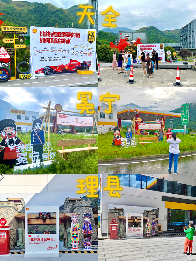 除了线上宣传,蜀交国储公司还采取“线上线下”联动机制,为三座加油站换上了“新衣”,凸显当地别具一格的特色元素,欢迎八方游客。天全服务区加油站设立“此生必驾318”的巨型地图;理县服务区加油站散发着古老而神秘的羌寨风情;冕宁服务区加油站遍布着奔放热情的彝族元素。通过精心打造,蜀交国储公司的加油站变成一座座“最出片加油站”,创意的加油站美陈引来无数顾客驻足打卡,成为了顾客相机中的风景,也为他们的旅途增添了一丝惊喜,留下一份回忆。