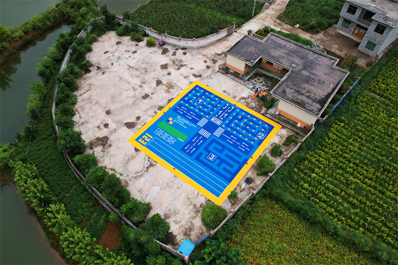 全国第843座美团乡村儿童操场,贵州省铜仁市松桃苗族自治县盘石镇过洲村山村幼儿园。(摄影:李熠晨)
