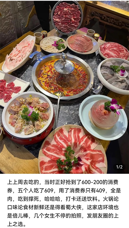 社交平台上,成都消费者分享使用“蜀里安逸”消费券的愉快体验。(图源:大众点评)