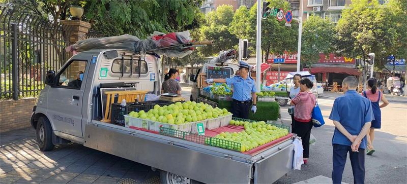整治期间,民警及城管执法人员采用“边宣教、边警告、边整治”的方法,对沿街小商贩占道经营、电瓶车违规占道、机动车乱停乱放等现象进行整治,向群众普及占道经营和乱停乱放造成的安全隐患以及承担的法律责任,要求摆摊设点人员文明经商、还路于民,拒绝乱停乱放等违法行为。