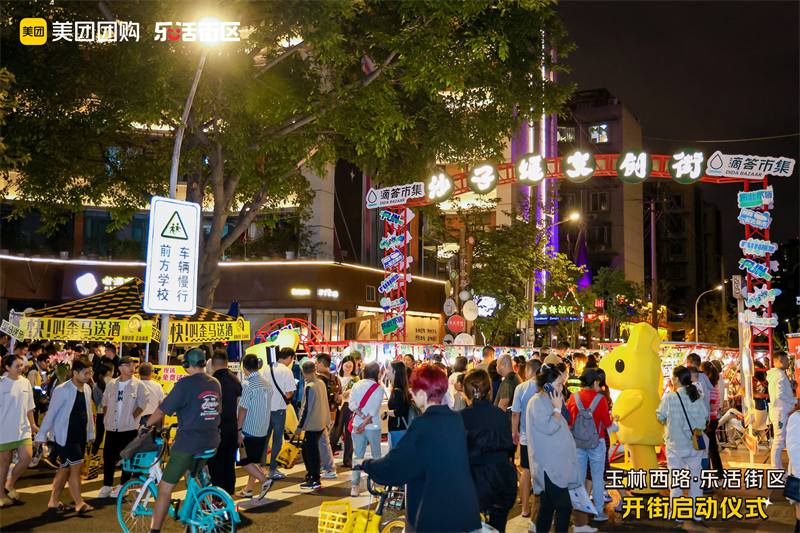 四川新闻网成都9月25日讯 9月23日,在成都高新区管委会指导下,由成都高新区国际合作商务局、高新区芳草街街道办事处主办,美团承办的玉林西路“乐活街区”大众点评“必打卡美食街”开街仪式成功启动。成都高新区的玉林西路是美团在四川省落地的首条乐活街区,玉林西路·乐活街区项目是成都高新区促消费、激活力、拓场景的又一重要举措。玉林西路通过美团“乐活街区”与“大众点评必系列IP”焕新升级,塑造高新区“玉林西路”街区消费名片,促进消费供给创新,培育夜间消费新热点,进一步助推成都创建国际消费中心城市,推动服务零售提质扩容。