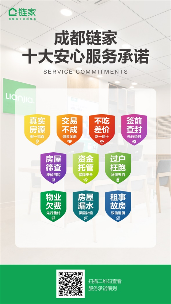 成都链家承诺:经成都链家居间成交的买卖业务,如最终未能成功办理过户手续,符合下列任一条件的,费用缴纳方(买受一方或交易双方)所支付的佣金(特指居间服务费,不包含我公司代收且已经支付给第三方的费用,例如评估费等)将全额返还。