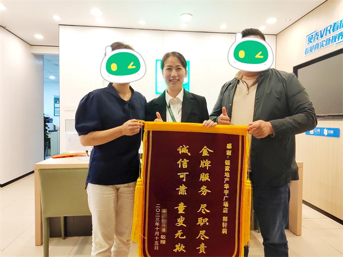 四川新闻网成都11月3日讯 10月16日,成都链家经纪人郭轩莉收到了一封长达1467字的感谢信还有写着“金牌服务、尽职尽责;诚实可信,童叟无欺”16个字的锦旗。