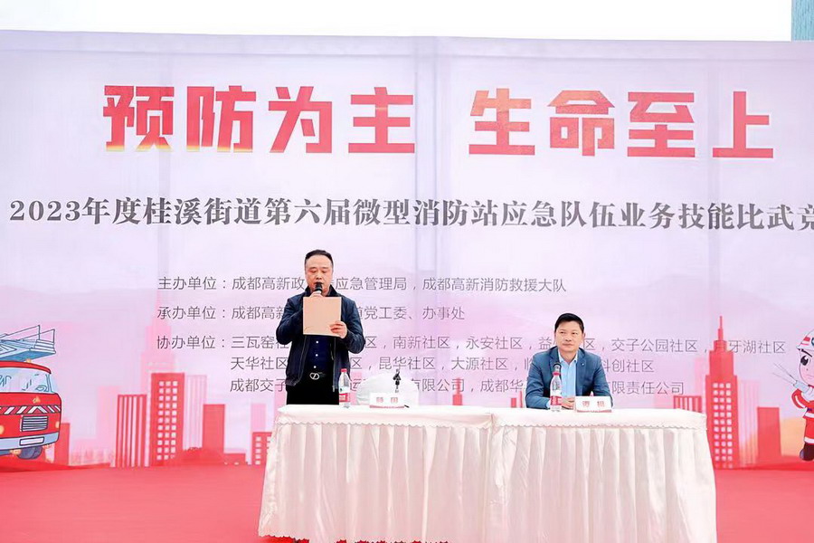 四川新闻网成都11月6日讯 2023年11月3日下午,由成都高新区政法委应急局、高新区消防大队主办,成都高新区桂溪街道党工委、办事处,桂溪街道安全生产委员会、桂溪街道消防工作办公室承办的2023年度“119”消防宣传月暨第六届微型消防站应急队伍业务技能比武竞赛活动在成都市交子公园举行。桂溪街道5支社区微型消防站、13支重点物业微型消防站共计18支代表队200余名队员参赛,桂溪街道重要企业、单位、居民代表等100余人到场观摩。