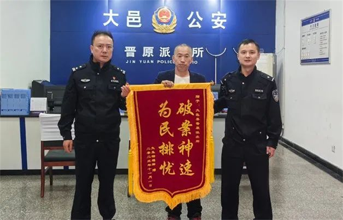 “破案神速啊,你们派出所真心实意为老百姓办实事的态度让我们感到温暖,给你们点赞,这面锦旗是我的心意!”领回被盗电动三轮车的报案人杨先生,高兴又激动地给办案民警送上一面“破案神速,为民排忧”的锦旗,来表达自己的感激之情。