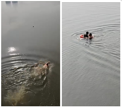 11月29日中午,四川眉山东坡湖老泉桥上,外卖骑手周海在送餐途中,看到一名男子正在东坡湖中挣扎,距离男子几十米远的地方,还有一个救生圈。