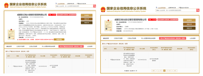 严格执行列入标准,“应列尽列”严违名单。按照《市场监督管理严重违法失信名单管理办法》明确的列入标准,对查办的成都彭记兔火锅餐饮管理有限公司、成都王老头彭记餐饮管理有限公司提交虚假材料取得公司登记的的违法行为作出吊销营业执照的行政处罚并列入严违名单,并通过国家企业信用信息公示系统依法公示。