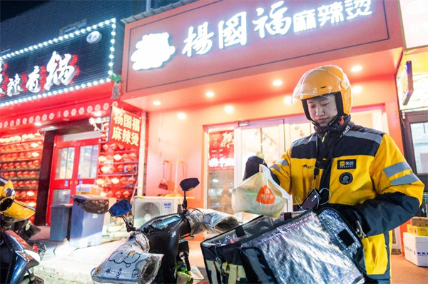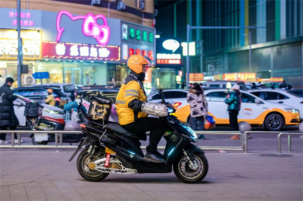 ▲骑手配冬日美食送夜宵 宋伟 摄