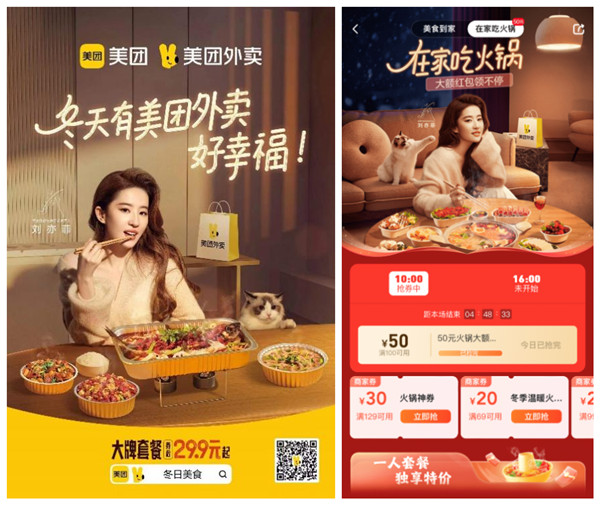 为持续促进冬日外卖“暖消费”,美团外卖在全国各地相继推出冬季促消费系列活动,发放消费券惠民的同时,也助力当地打造多元消费场景。在2023年12月8日-2024年1月14日活动期间,用户打开美团或者美团外卖App,通过搜索关键词“冬日美食”,即可进入线上活动会场,在顶部美食到家频道领取39-10元大额红包,火锅到家频道抢100-50元大额红包,上述大额红包不限时段均可使用。