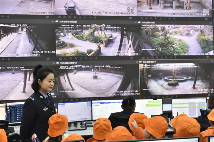 在升旗宣誓仪式结束后,今天活动的重要“访客们”闪亮登场。“哪位小朋友知道遇有紧急情况拨打哪个号码求助呢?” “我知道可以拨打110找警察叔叔......”在大邑县公安局指挥中心,来自幼儿园的“小客人们”近距离了解“110”,“零距离”体验别样“警”彩。