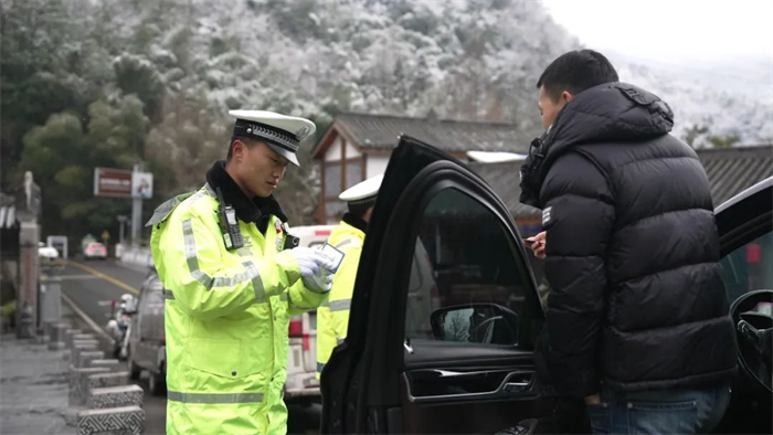 迎风傲雪,坚守岗位。在零下8°C的雪山下,全体执勤民警巡逻守候,服务群众、交通疏导,用实际行动解锁“平安密码”。(锁千程)