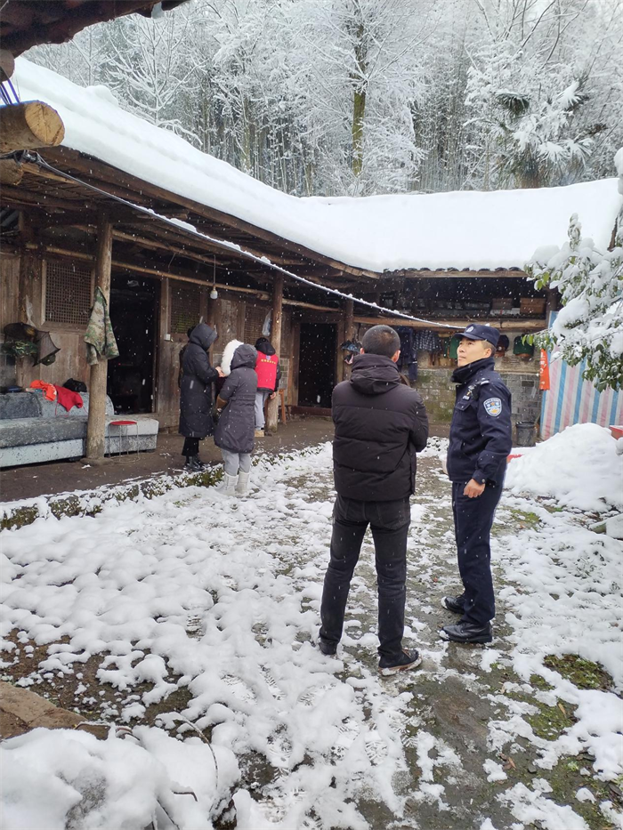 “这雪堆得太快了,上次来看到有根柱头有点松,这回都加固好了吧?”为防止在下雪期间广大村民人身安全、居民住房及经济财产出现隐患受到损害,西岭派出所民警在辖区走访群众开展隐患排查,提醒群众做好防寒措施、注意安全。
