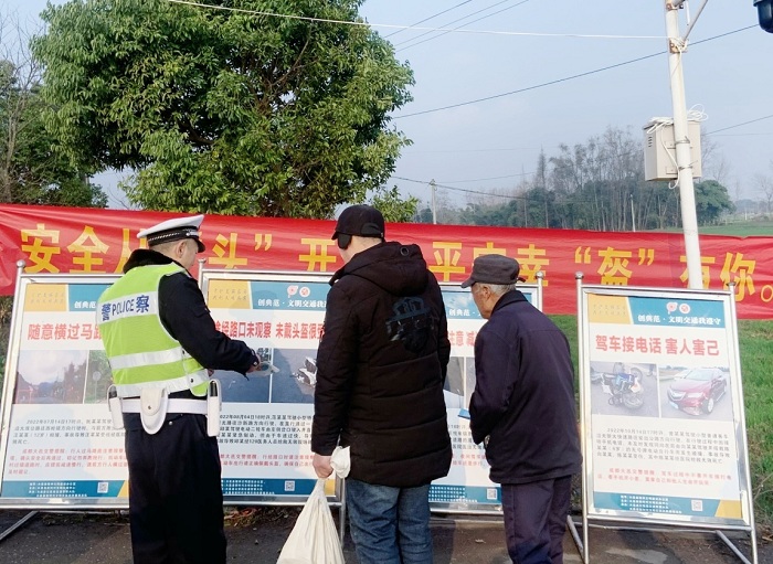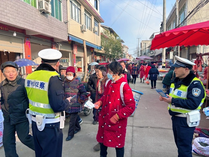 四川新闻网成都1月26日讯 为进一步加强冬季农村道路交通安全管理,提升广大农村群众的交通安全意识,有效预防和减少农村地区交通事故发生,1月25日,大邑公安交警联合安仁镇复兴社区利用乡镇赶集日,深入集市、村社和田间地头积极开展冬季交通安全宣传。宣传中通过发放宣传资料、摆放宣传展板,近期辖区农村交通事故典型案例警示等形式,向群众讲解了冬季出行注意事项以及随意横穿马路、闯红灯、驾乘电动车、摩托车不佩戴安全头盔、三轮车违法载人等农村地区常见交通违法的危害性,引导群众出行遵纪守法,自觉抵制交通违法行为。