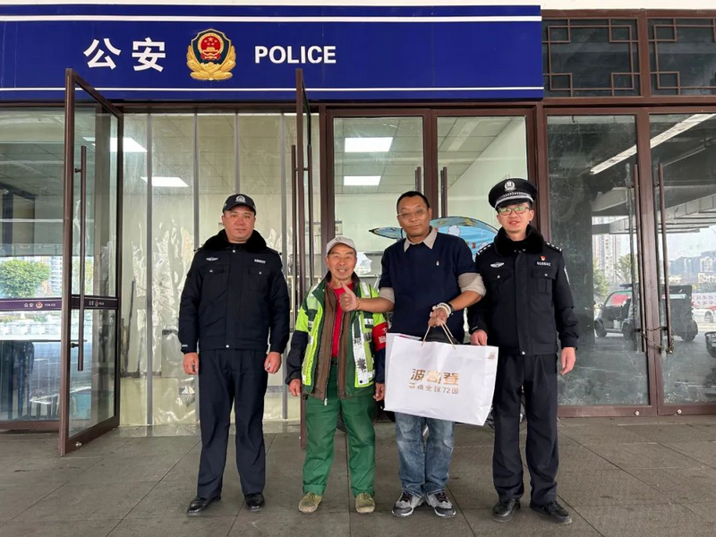 2月14日上午,旅客李先生乘坐高铁到达大邑,出站时发现其行李袋丢失,便前往警务站寻求工作人员帮助,并告知袋里贵重物品。民警随即联系高铁站服务部工作人员,最终查询到该行李袋被高铁站清洁工人捡到,此时也正在寻找失主。