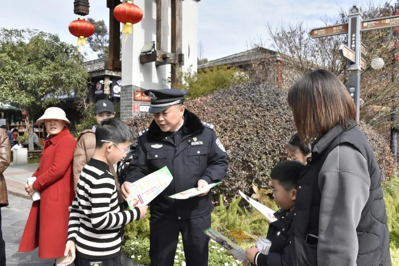 春节期间,像民警陈碧洲一样,用脚步丈量“平安路”,用行动点亮“平安灯”的民辅警们还有很多,他们在景区、商场、村镇集市广泛向群众宣传反电诈、交通安全等相关的知识,提升群众的防范意识。