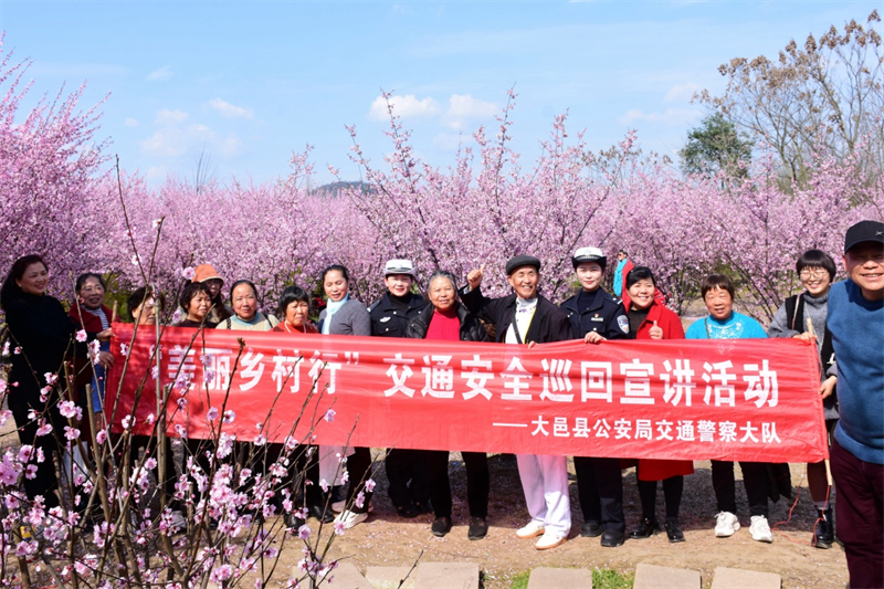 四川新闻网成都3月14日讯 随着春天的脚步渐近,大地换上了五彩斑斓的新装,油菜花、樱花、李花争相绽放,形成了一片片美丽的花海。在这春意盎然的时节,大邑公安深入花海,用最接地气的方式让交通安全“渗”入人心,让赏花群众和交警来一场交通安全文明的“约会”!