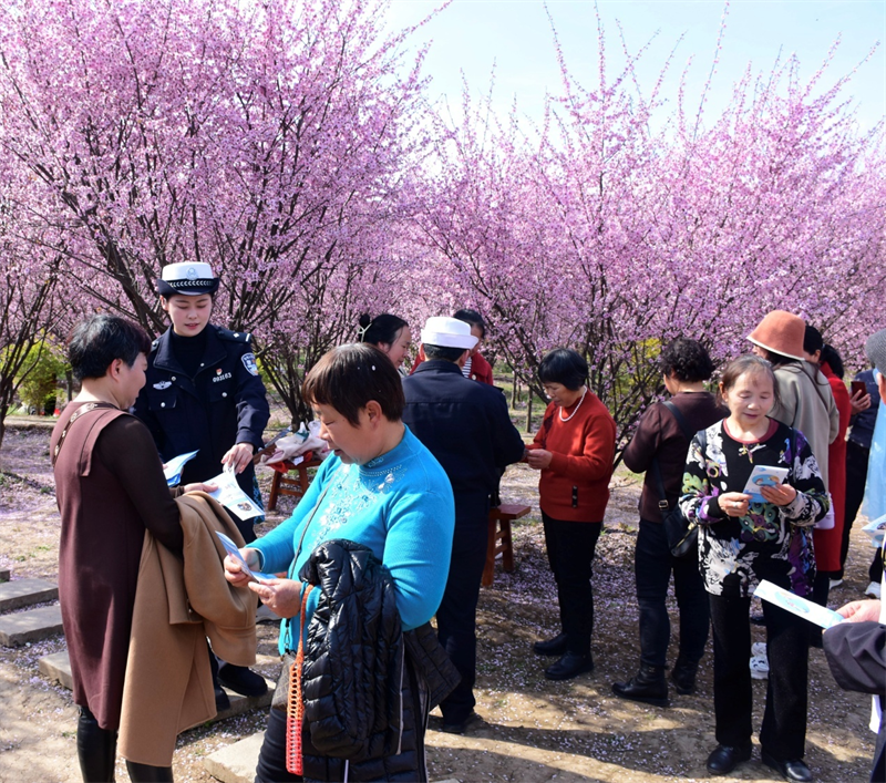 活动中,交警通过面对面交流,发放宣传资料向游客们普及交通安全知识,强调遵守交通规则的重要性。对于驾车前来的游客,交警提醒他们要时刻注意行车安全,不超速行驶,开车不接打电话,避免因为分心而引发的交通事故。同时,停车时要选择指定的停车场,不要随意停车,以免造成交通堵塞或给其他游客带来不便。交警特别强调,赏花季节也是酒驾、疲劳驾驶等违法行为的高发期,驾驶员要牢记“喝酒不开车,开车不喝酒”的原则,确保自己和他人的安全。