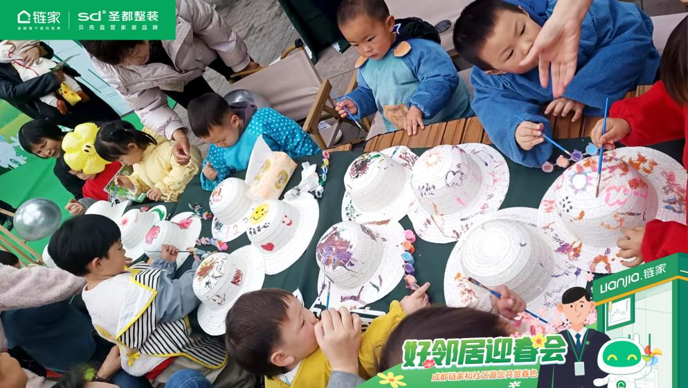 神仙树社区广场上,小朋友们正在草帽上绘画,“我画的是春天,有很多花。”“这是我们一家人,我们去放风筝。”不仅有小朋友,还有一位画画专业的男生,为自己的女朋友画了一顶定制款帽子,不仅有技术,更有满满的爱。邻居们天马行空的想象力赋予了普通的帽子新的生命力。在创造与浪漫中,我们触摸春天。