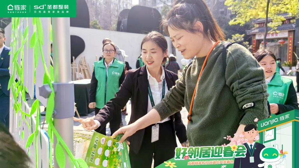 “我与春天撞个满怀”“有链有花,有我有你”……逛完整个游园会,邻居们在主画面前留下一张合影,开心地领取链家准备的小礼物。链家既是提供房产交易服务的场所,也是承载着为社区居民提供日常所需的“城市补给站”,每一个链家人都希望通过力所能及的帮助为社区居民带来生活中的“小确幸”。